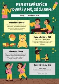 Milí rodiče, srdečně Vás zveme na naši Podzimní slavnost, která se uskuteční ve čtvrtek 23.10. od 15:30 hodin na zahradě mateřské školy, kde na Vás budou čekat aktivity s podzimní tématikou. Program slavnosti: 15:30 – zahájení akce 15:45 – společné přivítání a začátek aktivit Děti si nejprve vyzvednou kartičku, na kterou budou při plnění úkolů sbírat razítka. Po splnění všech úkolů je čeká sladká odměna – voňavá vafle s nutellou a šlehačkou! Těšit se mohou na různé podzimní úkoly, tvoření, veselé aktivity a také fotokoutek, kde si budete moci pořídit krásnou vzpomínku. Pro děti bude připraven teplý čaj Pro dospěláky občerstvení zajištěno Pokud budete chtít, můžete si přinést vlastní špekáčky k opékání . Budeme také moc rádi, pokud se zapojíte a přinesete nějakou dobrotu z listového těsta – sladkou či slanou, o kterou se společně podělíme. Na místě bude připravena i kasička na dobrovolný příspěvek, který využijeme na aktivity pro děti. Za nepříznivého počasí se tato akce bude konat v tělocvičně – Sportovní hala Žabeň. Provoz mateřské školy bude v tento den upraven – MŠ bude otevřena pouze do 16:00 hodin. Těšíme se na společně strávené odpoledne plné pohody, zábavy a podzimní nálady!