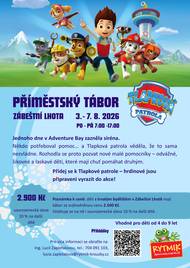 Vážení rodiče, vyslyšeli jsme vaše přání a letos u nás v Zábeštní Lhotě budeme poprvé ve spolupráci s Rytmik Dětem pod vedením Lucie Zapletalové pořádat příměstský tábor. Tábor se bude konat v termínu od 3. do 7. srpna 2026. S dětmi se přidáme k odvážnému týmu Tlapkové patroly a vyrazíme s nimi zachraňovat Adventure Bay. Pro děti z naší obce je pak cena zvýhodněna. Přihlašovat se lze přes QR kód na plakátku či přes stránky www. rytmik-krouzky.cz. Pozor kapacita je omezena! Těšíme se na společné prázdninové dobrodružství, tak si to rozhodně nenechte ujít!