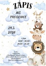 Mateřská škola Prosenice srdečně zve rodiče malošků na zápis, který se bude konat 24.03.2026 v čase 8:00 - 10:00 a 14:00 - 15:30 hodin. S sebou rodný list, občanský průkaz rodiče a žádost o přijetí. Přejeme hezký den :)