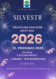 Obec Žabovřesky srdečně zve na silvestrovskou zábavu dne 31. 12. 2025 od 20:00 hod v KD.