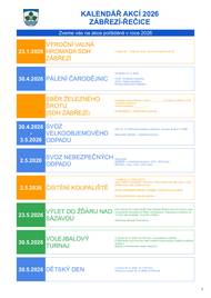 INFORMACE o konání zasedání Zastupitelstva obce Zábřezí-Řečice Místo konání: Obec Zábřezí-Řečice – KANCELÁŘ OÚ Doba konání: Čtvrtek 26. 02. 2026 od 19:00 hod Navržený program: ZAHÁJENÍ ROZPOČTOVÉ OPATŘENÍ VÍCEÚČELOVÁ NÁDRŽ ZÁBŘEZÍ - DOKONČENÍ PLÁNOVÁNÍ PRACÍ ROKU 2026 DISKUSE ZÁVĚR