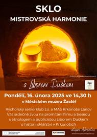 Před 23 dnyLIBOR DUŠEK – SKLO: MISTROVSKÁ HARMONIE – PROMÍTÁNÍ A BESEDARýchorský seniorklub Vás srdečně zve na promítání filmu a besedu s etnologem Liborem Duškem o historii sklářství v Krkonoších. V pondělí 16. 2. od 14,30 v Městském muzeu Žacléř.