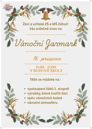 Srdečně vás zveme na Vánoční Jarmark, který se koná 16. prosince 2025 od 15:30 do 17:00 v budově ZŠ a MŠ Záhoří. Těšit se můžete na vystoupení žáků 1. stupně, výrobky, které tvořili žáci, zpěv vánočních koled a příjemnou vánoční atmosféru.