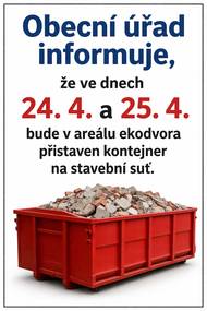 Před 12 dny8.4.2026 - HLÁŠENÍ OBECNÍHO ROZHLASU1. Obecní úřad Oznamujeme občanům, že zítra 9.4. bude uzavřena část komunikace vedle bytovek z důvodu napojení kanalizace u domu č. p. 182 (pan Slezáček). 2. Obecní úřad Od 20. do 24. dubna proběhne plánované přerušení dodávky plynu z důvodu stavebních prací. Odstávka se týká lokalit Bytovky, část Zálesí a domy směr Slavíkovi. Dotčení odběratelé byli o této skutečnosti informováni. Žádáme o pochopení a přizpůsobení se této situaci. Děkujeme. 3. Obecní úřad Obecní úřad informuje, že ve dnech 24. 4. a 25. 4. bude v areálu ekodvora přistaven kontejner na stavební suť. 4. Obecní úřad Upozorňujeme občany, že poplatky na rok 2026 měly být uhrazeny nejpozději do 31. března. Žádáme ty, kteří tak dosud neučinili, aby poplatky uhradili v co nejkratším možném termínu. Opady 800 Kč/os. Pes 100 Kč/kus Stočné 1800 Kč/os. Kabelová televize 1500 Kč Poplatky můžete uhradit na účet č. 4124641/0100, VS číslo domu nebo v hotovosti v kanceláři OÚ. Splatnost byla do 31.3. 5. Obecní úřad Podepisují se aktualizované smlouvy na hrobová místa a vybírají se poplatky za pronájem. Jednohrob 500 Kč Dvojhrob 1000 Kč Trojhrob 1500 Kč Čtyřhrob 2000 Kč Kolumbárium 500 Kč Poplatky můžete uhradit na účet č. 4124641/0100, VS číslo hrobu nebo v hotovosti v kanceláři OÚ. Splatnost byla do 31.3. 6. SDH Zakřany 11.4. proběhne sběr železa od 13:00 hod. 7. Spolek Zakřanské hody Spolek Zakřanské hody ve spolupráci s Vinařstvím Bábkovi Vás srdečně zvou na Večer v rytmu vína 18.4. v 18:00 hod. v sále OÚ. Degustace prémiových vín, registrace na tel. čísle 777 096 495. Po skončení degustace k tanci a poslechu hraje kapela PRO VÁS, občerstvení zajištěno. 8. MUDr. Stránská MUDr. Stránská oznamuje: 9.4. od 7-11 hod. bude v ordinaci přítomna pouze sestra . Od 11ti hodin normálně ordinuje pro zvané prevence. 9. Firma Vítek Firma Vítek bude prodávat 9.4. v 10:00 hod. krmiva pro domácí a hospodářská zvířata. Nyní v akci: Směs pro nosnice 345Kč/25kg, Králík výkrm 315Kč/25kg, kapsičky pro kočky od 4,50 Kč/ks. Dále proběhne výkup králičích kůží za 15Kč/ks. 10. Vinařství Holánek Vinařství Holánek přijede v sobotu 11.04. v 15:50 hod. s pojízdnou vinotékou. Tento týden přiveze v akci polosladký Sauvignon za 160 Kč, suchou Pálavu za 170 Kč, vína sudová 80-90 Kč/litr, vína lahvová výběr z hroznů, pozdní sběr 150-250 Kč. 11. Drůbežárna Prace Drůbežárna Prace bude v sobotu 11. 4. ve 12:00 hod. prodávat: mladé kuřice a kohouty, slepice po roce snášky za 140Kč, krmivo pro drůbež a králíky, vitamínové doplňky a dále pak vykupovat králičí kožky - cena 10 Kč/ks.