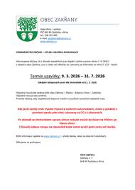 Před 2 dny4.3.2026 - HLÁŠENÍ OBECNÍHO ROZHLASU1. Obecní úřad Dnes v 18:00 se bude konat veřejné zasedání zastupitelstva obce v sále OÚ. 2. Obecní úřad V pátek 6.3. bude ulice Drahy dočasně neprůjezdná od 8.00 hod. cca do 11 hod. 3. Obecní úřad Upozorňujeme občany, aby byli obezřetní vůči možnému výskytu pochybných osob v okolí a důsledně si zamykali dveře svých domovů. 4. Obecní úřad Informujeme občany, že z důvodu stavebních prací dojde k úplné uzavírce silnice v úseku od odbočky na Lukovany po křižovatku na Výsek. Termín uzavírky bude od 9. 3. do 31. 7. Kdo jezdí častěji směr Vysoké Popovice osobním automobilem, může si požádat o povolení vjezdu přes obec Lukovany na OÚ v Lukovanech. Po dohodě se zhotovitelem opravy silnice nebude možné docházet na hřbitov po hlavní silnici. Z důvodů zákazu vstupu na staveniště bude nutné využít polní cestu od Slavíků. Bližší informace najdete na www.zakrany.cz nebo na obecních vývěskách. 5. Obecní úřad Vybírají se poplatky na rok 2026. Opady 800 Kč/os. Pes 100 Kč/kus Stočné 1800 Kč/os. Kabelová televize 1500 Kč Poplatky můžete uhradit na účet č. 4124641/0100, VS číslo domu nebo v hotovosti v kanceláři OÚ. Splatnost do 31.3. 6. Obecní úřad Podepisují se aktualizované smlouvy na hrobová místa a vybírají se poplatky za pronájem. Jednohrob 500 Kč Dvojhrob 1000 Kč Trojhrob 1500 Kč Čtyřhrob 2000 Kč Kolumbárium 500 Kč Poplatky můžete uhradit na účet č. 4124641/0100, VS číslo hrobu nebo v hotovosti v kanceláři OÚ. Splatnost do 31.3. 7. Obecní úřad Obec Zakřany zve na Velikonoční tvoření a prodejní jarmark 14.3. od 14:00 – 17:00 hod. do sálu OÚ. Proběhne zdobení vajíček, tašek, výroba drobných předmětů s jarní tématikou, korálkování a bude zde ochutnávka velikonočních pochoutek. Vstupné dobrovolné. 8. Poliklinika Zastávka Dům zdraví Zastávka oznamuje: MUDr.Kubešová nebude ordinovat v pondělí 9.3., zástup MUDr.Valeš 7.30 - 11.00. 9. Drůbežárna Prace Drůbežárna Prace bude v sobotu 7. 3. ve 12:00 hod. prodávat: mladé kuřice a kohouty, krmivo pro drůbež a králíky, vitamínové doplňky a dále pak vykupovat králičí kožky - cena 10 Kč/ks.