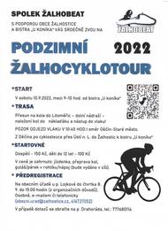 ZVEME VÁS NA PODZIMNÍ ŽALHOCYKLOTOUR DNE 16.9.2023. DÉLKA TRASY CCA 40 KM. CENA 150,-KČ DOSPĚLÍ, 100,-KČ DĚTI DO 15 LET. SRAZ A NALOŽENÍ KOL V 7:50 HODIN NA ŽELEZNIČNÍ STANICI ŽALHOSTICE. ODJEZD V 8:15 HODIN VLAKEM DO TŘEBENIC. V CÍLI OBČERSTVENÍ A NÁPOJE.