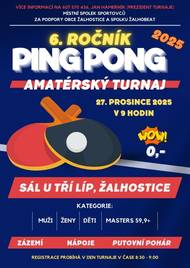 Dne 27.12.2025 od 9 hodin na SÁLE U TŘÍ LIP ŽALHOSTICE se koná 6. ročník tradičního turnaje v pinčesu. Registrace od 8:30 hodin, 4 kategorie, ceny, občerstvení, putovní pohár. Těšíme se na Vás!