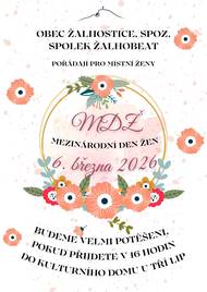 Zveme všechny žalhostické ženy na oslavu MDŽ, která se koná dne 6.3.2026 od 16 hodin v Kulturního domu "U TŘÍ LIP". Občerstvení a zábava zajištěna. Těšíme se na Vás!