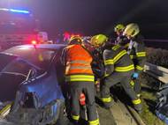 Srážka dvou aut na D11 ochromila dopravu: pět zraněných, jeden pacient letěl do traumacentra