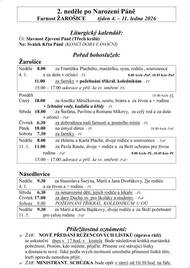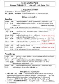 2. neděle v mezidobí Farnost ŽAROŠICE týden 18. – 25. ledna 2026 Liturgický kalendář: Út: Sv. Fabiána, papeže a mučedníka, sv. Šebestiána, mučedníka St: Památka sv. Anežky Římské, panny a mučednice So: Památka sv. Františka Saleského, biskupa a učitele církve Ne: 3. neděle v mezidobí (NEDĚL