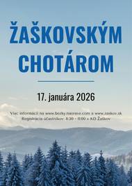 Priatelia turistiky a obec Žaškov Vás pozývajú na 16.ročník Prechodu žaškovským chotárom dňa 17.1.2025 Snehové podmienky sú dobré na celej trase.