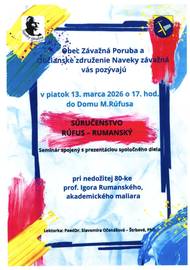 Obec Závažná Poruba a Občianske združenie Naveky závažná vás pozývajú na seminár spojený s prezentáciou spoločného diela SÚRUČENSTVO RÚFUS - RUMANSKÝ