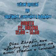 Obec Zbrašín zve všechny své občany na veřejné bruslení v Lounech - zimní stadion dne 22. 3. od 12:00 hod do 13:30 hod.