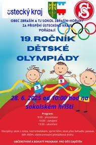 V sobotu 28. 6. od 10:00 hod se koná dětská zbrašínská olympiáda na sokolském hřišti ve Zbrašíně. Prezentace dětí bude probíhat od 9:30. Těšíme se na Vaši účast. Obec Zbrašín a TJ Sokol Zbrašín - Hořany.
