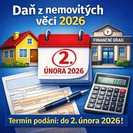 Připomínáme občanům, že přiznání k dani z nemovitých věcí na rok 2026 je nutné podat nejpozději do pondělí 2. února 2026. Finanční úřad nabízí rozšířené služby a pomoc s vyplněním.