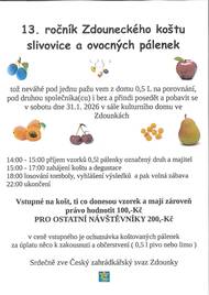 Český zahrádkářský svaz Zdounky vás srdečně zve na 13. ročník Zdouneckého koštu slivovice a ovocných pálenek v sobotu 31. ledna v sále Domu kultury ve Zdounkách. Příjem vzorků je od 14.00 hod., zahájení koštu a degustace v 15.00 hod. Přijďte posedět a pobavit se.