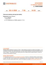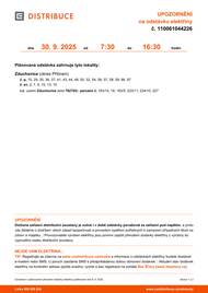 Dne 30.09.2025 cca od 7:30 do 16:30 je plánována provozovatelem distribuční soustavy odstávka elektřiny v obci Zduchovice, v části obce od obecního úřadu do osady Bukovec. Dotčené nemovitosti vč. čísel popisných, evidenčních, popř. parcelních jsou uvedeny v oznámení.