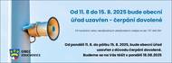 Od 11. do 15. srpna bude obecní úřad ve Zduchovicích uzavřen z důvodu čerpání dovolené. Budeme se na Vás těšit znovu v pondělí 18. srpna.