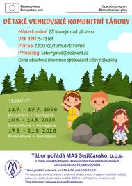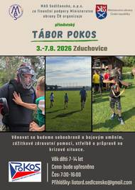 MAS Sedlčansko o.p.s. za podpory Ministerstva obrany ČR organizuje od 3. do 7. srpna 2026 příměstský TÁBOR POKOS ve Zduchovicích. Přihlášky zasílejte výhradně na e-mail: liotard.sedlcansko@gmail.com. Maximální předpokládaná úhrada v případě neobdržení dotace od MOČR bude 2 900 Kč/dítě.