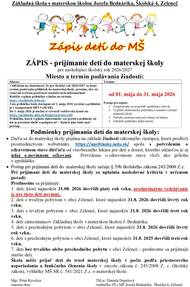 Oznamujeme občanom, že v dňa 17.4.2026 sa uskutoční zápis detí do 1. ročníka ZŠ v školskom roku 2026/2027.
