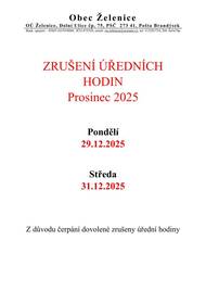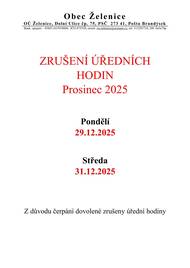 Ve středu 13.08.2025 z důvodu dovolené zrušeny úřední hodiny OÚ Želenice.