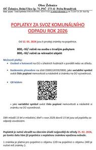 od 12.01.2026 jsou k prodeji známky na popelnice. Platba možná hotově i převodem.