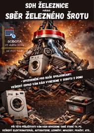 Sbor dobrovolných hasičů v Železnici pořádá v sobotu 25. dubna 2026 od 8 hodin tradiční „Sběr železného šrotu“. Veškerý odpad vám hasiči ochotně vynosí také z domu. Současně odvezou i staré a nefunkční spotřebiče, jako TV, PC, autobaterie, ledničky, mrazáky, pračky ad. Děkujeme, že třídíte a pomáháte životnímu prostředí!