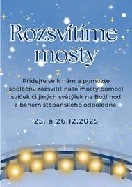 ✨ Rozsvítíme mosty ✨ Přidejte se k nám a pomozte společně rozsvítit naše mosty pomocí svíček nebo jiných světýlek. 🕯️✨ 📅 25. a 26. 12. 2025 📍 Na mostech v obci 🕯️ Boží hod vánoční a štěpánské odpoledne Děkujeme, že budete u toho 💙