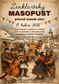 Už tuto sobotu 17.01. se v Ženklavě potkáme na masopustu! 🥳 Průvod masek obcí vyrazí v 10:00 od „Oázy“ a čeká nás veselá atmosféra, cimbálovka i dobré občerstvení. Přijďte v masce nebo bez ní – bude veselo! 🎭🎶