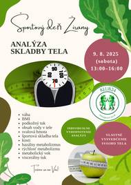 Pozývame všetkých občanov na bezplatnú analýzu skladby tela, ktorá sa uskutoční v rámci športového dňa v sobotu 9. augusta 2025 od 13:00 do 16:00 hod. v areáli ZŠ v Žiranoch.