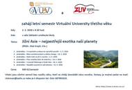 VU3V a ZŠ a ZUŠ Zliv zvou na letní semestr. Začátek od 2.2.2026 v 9.30 hod v sále ZUŠ Zliv. Téma je Jižní Asie - nejpestřejší exotika naší planety. Více v příloze