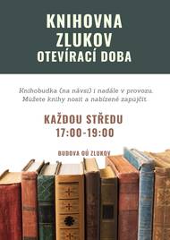 Před 26 dnyOtevírací doba knihovnyMilí občané, obecní knihovna je opět v provozu. Otevírací doba je každou středu od 17:00 do 19:00. V knihovně je možné posedět u kávy a popovídat. O knihovnu se nyní stará paní Blanka Koblišková. obec Zlukov