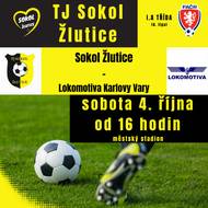 Fotbalový klub TJ Sokol Žlutice zve všechny své fanoušky na utkání 1.A třídy, které se uskuteční v sobotu 4. října 2025 od 16 hodin na městském stadionu ve Žluticích. Těšíme se na Vaši návštěvu.