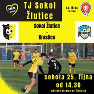 Fotbalový klub TJ Sokol Žlutice zve na utkání 1. A třídy proti SK Kraslice. Hraje se v sobotu 25. října od 14.30 na městském stadionu ve Žluticích. Těšíme se na podporu.