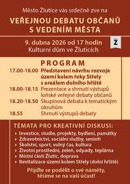Zveme vás na veřejnou debatu k rozvoji Žlutic ve čtvrtek 9.dubna 2026 od 17 hodin v kulturním domě.