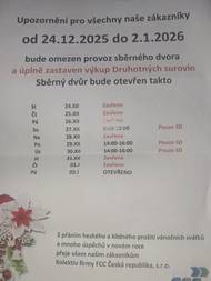 Oznamujeme občanům, že z důvodu poruchy svozového vozu budou popelnice z lokalit Farské I, Farské II, Dubina a Nesměřice svezeny v úterý 6. 1. 2025.