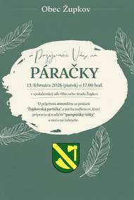 Obecný úrad v Župkove pozýva na oslavu Medzinárodného dňa žien, ktorá sa uskutoční 6. marca 2026 o 17.00 hod. v spoločenskej sále.