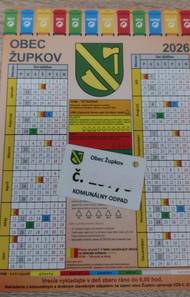 Obec Župkov pripravila nové kalendáre zvozu odpadu na rok 2026, ktoré budú doručené do každého domácnosti. Kalendáre si môžete vyzdvihnúť aj osobne na obecnom úrade, alebo vám ich odovzdá pani Ľubica Repiská pri vyúčtovaní kupónov.