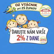 Vážení rodičia a obyvatelia Župkova, podporujte Občianske združenie Vtáčnik pri ZŠ Župkov cez 2 % z dane. Tieto prostriedky pomôžu našim deťom v rôznych aktivitách a súťažiach.