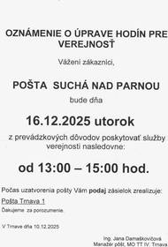 Optika ANPEK Banská Bystrica dňa 21.1.2026 od 15:15-16:00 hod. ponúka v priestoroch OcÚ možnosť kompletného vyhotovenia dioptrických okuliarov, prípadne výmeny dioptrických skiel do vlastných rámov a bezplatné meranie zrakovej ostrosti. V prípade imobilného klienta volajte na tel.č 0917 997 737.