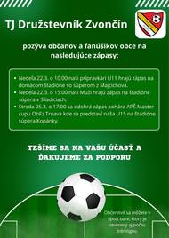 TJ Družstevník Zvončín pozýva občanov a fanúšikov na zápasy.