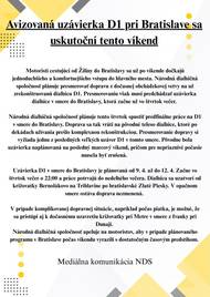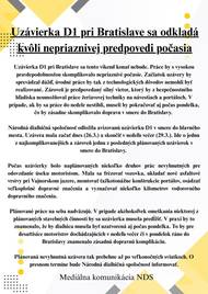 Uzávierka D1 pri Bratislave sa odkladá kvôli nepriaznivej predpovedi počasia.