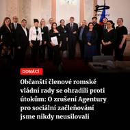 PodcastČteme Romea.cz - Občanští členové romské vládní rady se ohradili proti útokům: O zrušení Agentury pro sociální začleňování jsme nikdy neusilovali