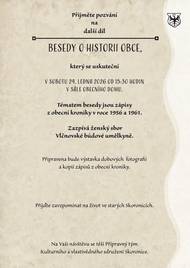 Přijměte pozvání na další díl z cyklu Besed o historii obce, který se uskuteční v sobotu 24. ledna 2026 od 15:30 hod. v sále Obecního domu ve Skoronicích. Tématem besedy jsou tentorkát zápisy z obecní kroniky z let 1956 a 1961. V programu zazpívá ženský sbor Vlčnovské búdové umělkyně. Připravena bude také výstavka dobových fotografií a kopií zápisů z obecní kroniky. Přijďte zavzpomínat na život ve starých Skoronicích. Na vaši návštěvu se těší přípravný tým Kulturního a vlastivědného sdružení Skoronice.