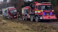 Kamion visel nad kolejemi, autobus sjel do příkopu. Hasiči měli ruce plné práce