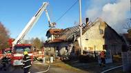 Střecha chaty byla v plamenech, hasiči zevnitř zachránili vyděšeného psa