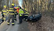 Auto skončilo na střeše, první pomoc poskytli hasiči, kteří jeli náhodou kolem