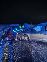 Místo přípitku výjezd k nehodě: V Sezemicích se srazila dvě auta, hlášené zaklínění se naštěstí nepotvrdilo
