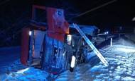Noc ve znamení sněhu a plechů: U Chotěvic se srazil autobus s autem, u Kocbeře lehl kamion do příkopu