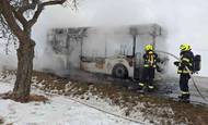 Cesta skončila v plamenech: U Nového Bydžova shořel autobus, 15 lidí stihlo utéct